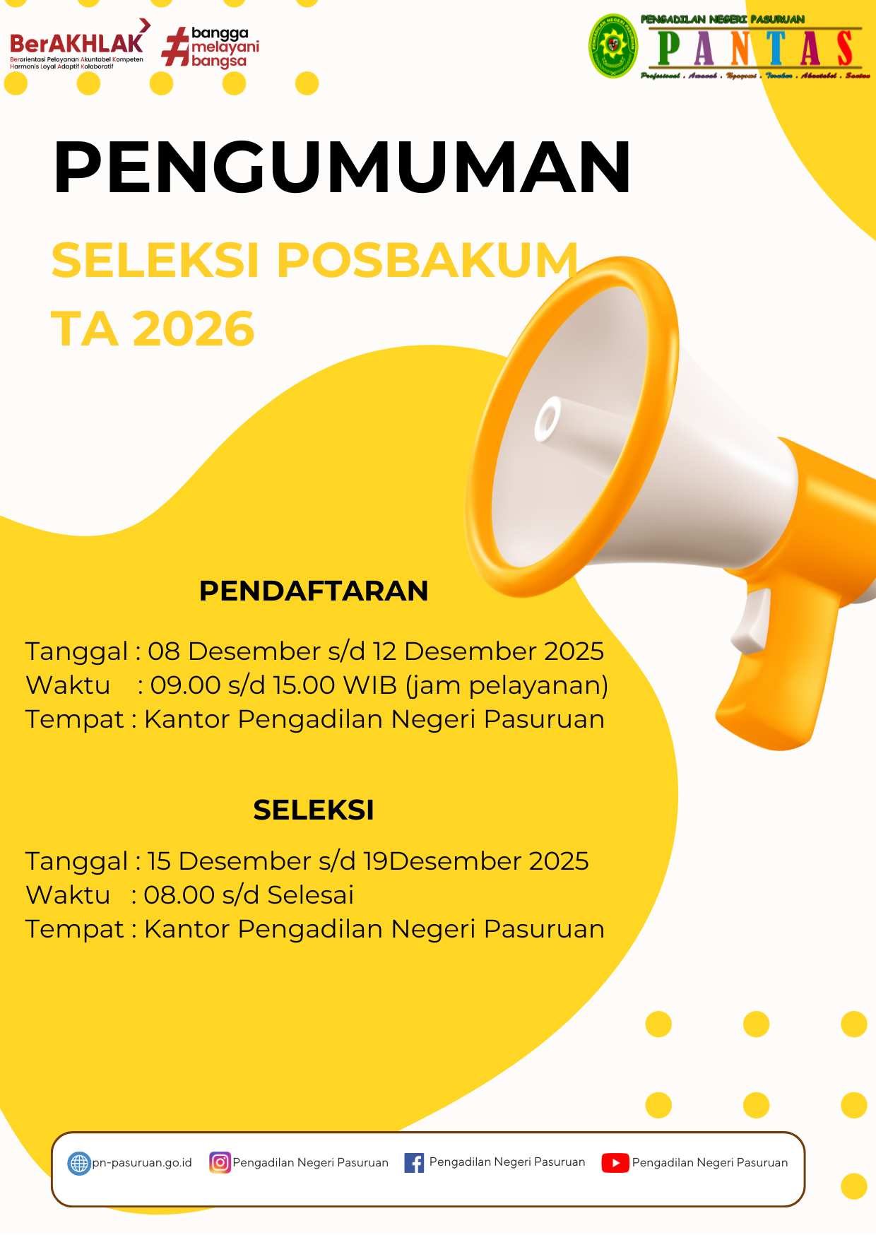 Pasuruan, 02 Desember 2025 - Pengadilan Negeri Pasuruan melaksanakan kegiatan serah terima pegawai outsourcing yang digelar di lingkungan kantor dan dihadiri oleh Ketua, Sekretaris, serta para pegawai terkait. Dalam kegiatan ini, 5 pegawai outsourcing resmi bergabung sebagai tambahan tenaga pendukung di berbagai bidang pelayanan