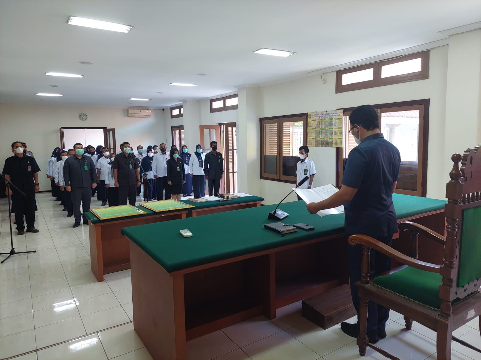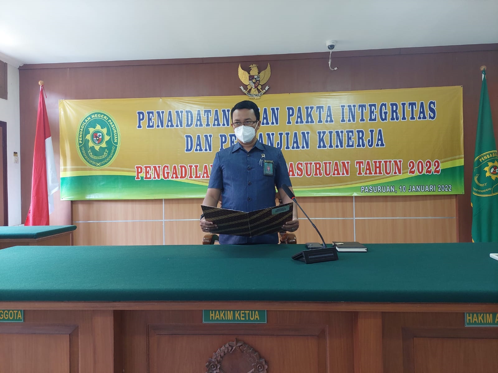 Pasuruan, 10 Januari 2022 - Memasuki hari pertama kerja di tahun 2022 ini, pada hari Senin tanggal 2 januari 2022 bertempat di Ruang Sidang Candra, Pengadilan Negeri Pasuruan melaksanakan Penandatangan Pakta Integritas dan Perjanjian Kinerja Tahun 2022 oleh Hakim, Panitera, Sekretaris, Pejabat Struktural dan Fungsional, dan Staf di lingkungan Pengadilan Negeri Pasuruan dan dilanjutkan Rapat Dinas Bulan Januari tahun 2022