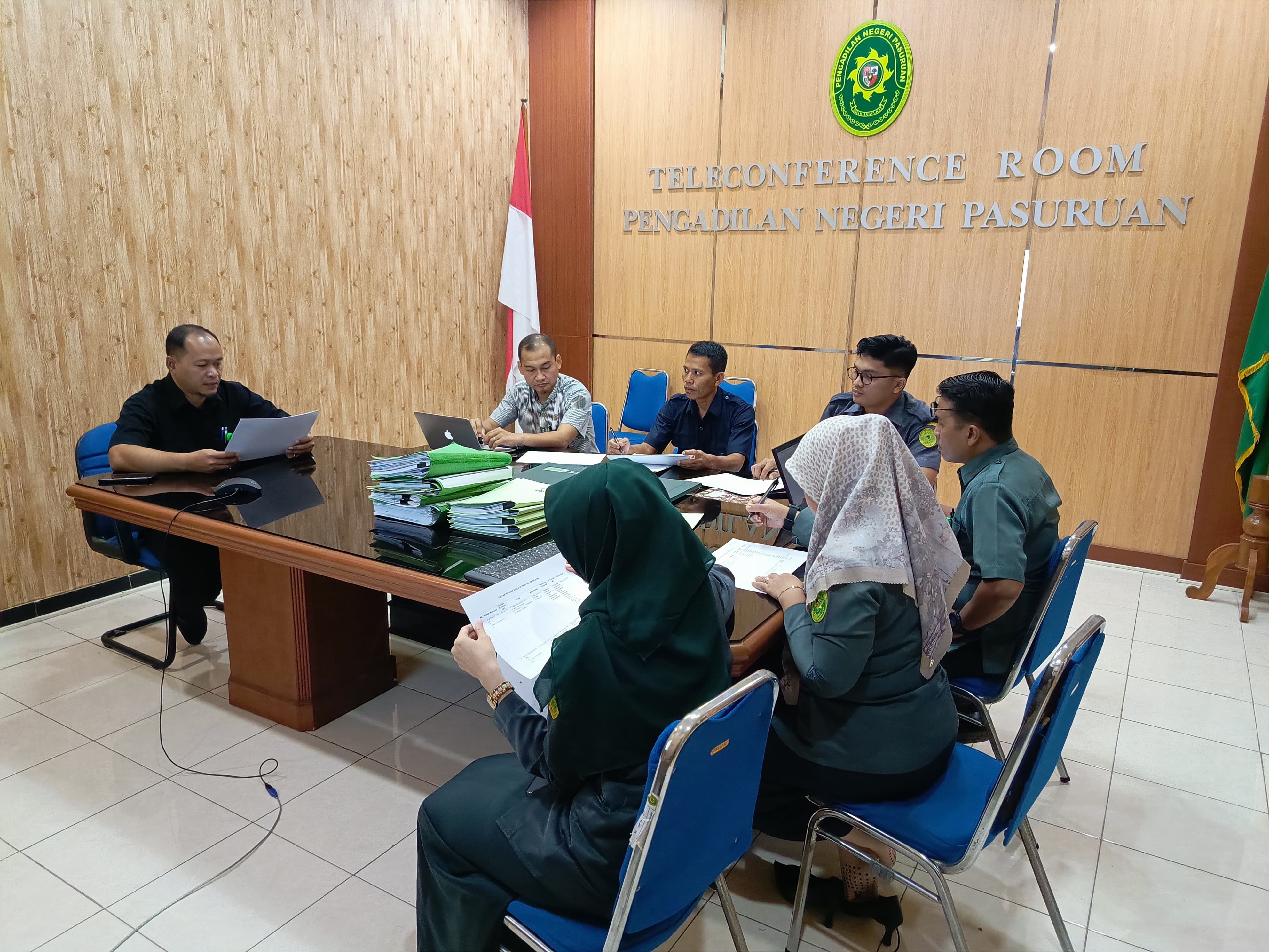 Pasuruan, (03/07/2024). Bertempat di Ruang Teleconference, Ketua Pengadilan Negeri Bapak Tri Margono, S.H. melaksanakan Kegiatan Monitoring dan Evaluasi Perkara Eksekusi pada Pengadilan Negeri Pasuruan. Kegiatan di mulai pada jam 10.00 WIB dan diikuti oleh Panitera dan Panitera Muda Perdata, Jurusita dan Staf Perdata Pengadilan Negeri Pasuruan